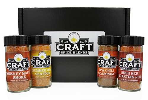 -. Feature : Seasoning gift set containing 4 SMALL BATCH spice blends all using HIGH QUALITY, ALL NATURAL, & GLUTEN FREE ingredients, does NOT contain MSG / Contains (1) Whiskey Maple Smoke, (1) Summer Ale Seafood, (1) IPA Chili Seasoning, and (1) Irish Red Roasting Rub / Get Mom or Dad ready for summer with this great MOTHER'S or FATHER'S DAY gift idea. / NO FILLERS, contains only high quality ingredients / 4 GLASS JARS WITH A SHAKER FITMENTS - Dimensions of each jar = 2 inches wide X 4.25 inches tall Report incorrect product information