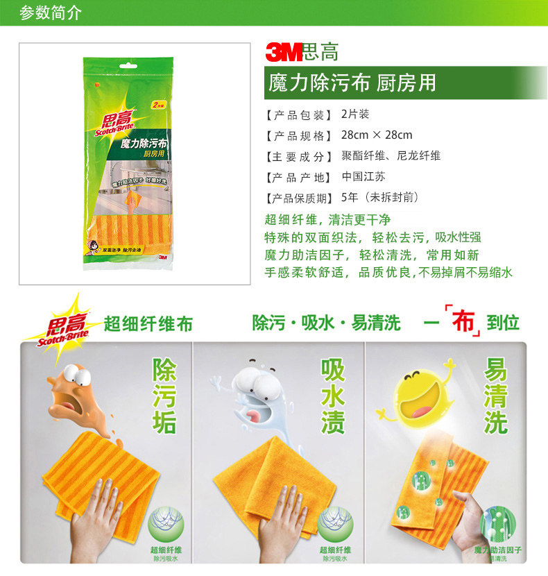 厨房用魔力除污抹布2片装超细纤维抹布洗碗布不沾油