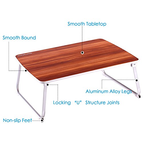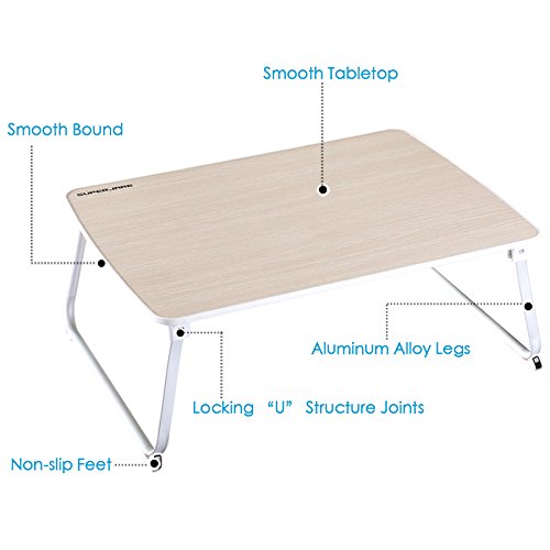 -. Feature : BIGGER THAN BIGGER - With a large tabletop size: 27 9/16"L x 19 7/8"W, perfectly fit all size laptops with a keyboard and mouse space. Plenty of room at the sides for your mouse to move, elbows to rest as well as a underneath room for legs to stretch - It's a smart choice! / MULTIPUPOSE TABLE - As a laptop desk for bed/couch for a relaxing workspace, as a standing desk at office to release from sitting time, as a writing/drawing desk for a spacious space, as a camping table for outdoor activities, or as a breakfast serving tray in bed for lazy mornings - It will certainly satisfy you! / HEALTHIER WORKING - Use this table on a regular height desk and stand up to work instead of sitting at the keyboard for hours, it will help with alleviate neck and back pain / STABLE & DURABLE - This laptop table is lightweight, but sturdy. The feet have a non-slip grip that will not budge at all, and locking "U" structure joints provide good stability. Max. load up to 80 lbs without slippage or deformation / CONSIDERATE DESIGN - This bed table has a little lip all around the edges. It could help prevent scratches and look better
