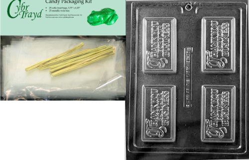 Cybrtrayd "Thank You for Your Business" Business Card Chocolate Candy Mold with Packaging Bundle of 25 Cello Bags, 25 Gold Twist Ties and Chocolate Molding Instructions