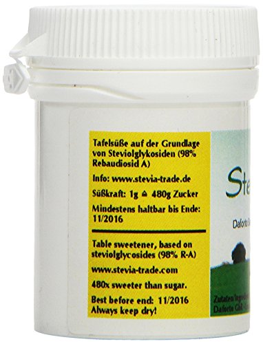 -. Feature : Tafelsüße auf der Grundlage von Steviolglycosiden in Pulverform / Der Star der Steviaprodukte aus dem Hause Daforto / Enthält 98prozentiges Rebaudiosid A / Erreicht eine 480fache Süßkraft im Vergleich zum Zucker
