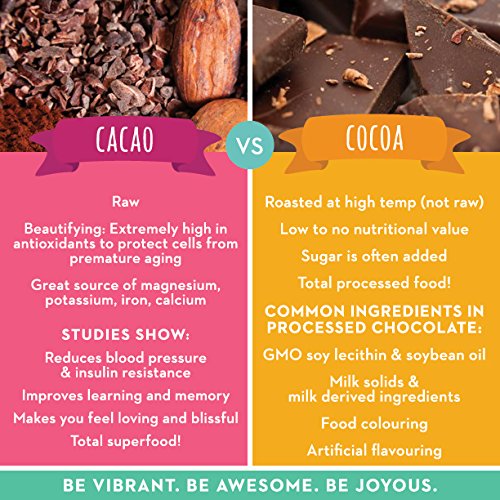 - Feature : HISTORY: The Aztecs and the Mayans used cacao for medicinal purposes and eventually became important in the society. Later on, raw cacao was used as a currency for trade and became an important barter item. / FEATURES: 100% Natural Cacao Powder in re-sealable food-grade pouch / ORIGIN: Cocoa or cacao powder is produced by pressing the ground-up cocoa nibs, removing a significant proportion of the fat or cocoa butter, leaving a residue called cocoa powder. Instantly transforms smoothies, desserts, and other recipes into the healthiest chocolate / CACAO POWDER IS FULL OF MINERALS AND ANTIOXIDANTS: Many health advocates and professionals consider raw cacao as a rich source of essential nutrients. It is reported that raw cacao contains 14 times the amount of antioxidants than red wine and 21 times the amount found in green tea. We all know that antioxidants are important in combating the harmful radicals in the body. In addition, raw cacao is also a great source of magnesium, a mineral that plays vital role in the proper functioning of the heart, digestive system, brain and bones. / REVIEWS: Love this all-natural cacao powder. Cacao powder is full of antioxidants and this product is so great. I use it to make mostly smoothies. I add it to almond or cashew milk with a frozen banana, chia seeds, and almond butter. I will add agave nectar for sweetness and it makes the best tasting smoothly. This is a great way to get extra antioxidants in your diet. This is also a great product to use in place of cocoa. I have used this to make brownies and they were delicious! You should really try this! - Peggy | I love my chocolate and will try any product I can with it! This made the best homemade brownies that my family devoured. It has such an awesomely rich scent. It is easy to store in the bag it came with since it stands up on it's with no problem. While I received this in exchange for my honest review, I see myself returning to it to order again. - Katie D.