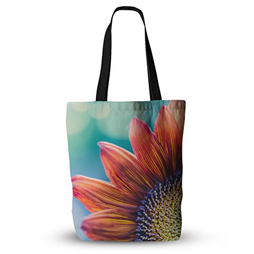 KESS InHouse Ann Barnes "Fire & Ice" Flower Red Teal Bokeh Everything Tote Bag, 18" x 18", Multicolor