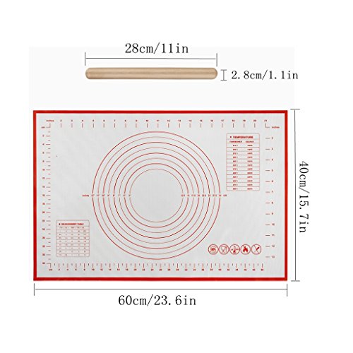 Baletu Non-slip Non-stick Pastry&Baking Mat with Measurement (15.7"x23.6")with A Rolling Pin(1.1"x11"), Reusable, Easy to Wash, FDA Approved
