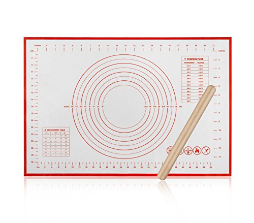 - SAVE MONEY & TIME: Come with a 1.1"x11"rolling pin in the package.15.7"x23.6" large pastry mat is very easy to clean-up, just wipe with hot soapy water after use, let air dry; Easily rolls up small to take up little space.Reuse innumerous times!