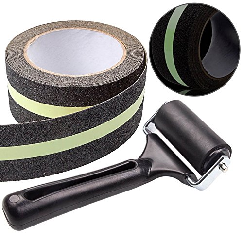 Acrux7 Non Slip Glow Tape & Roller, 2in width /16ft length Non Skid Traction Tape, 2.4in width Robber Roller for Adhesive Tape Sticking Well