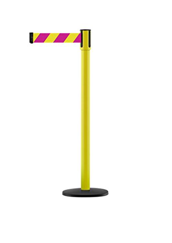 Tensabarrier - 890B-33-35-35-MAX-NO-D5X-C - yellow post, 2" wide, 13' length Chevron Magenta & Yellow belt