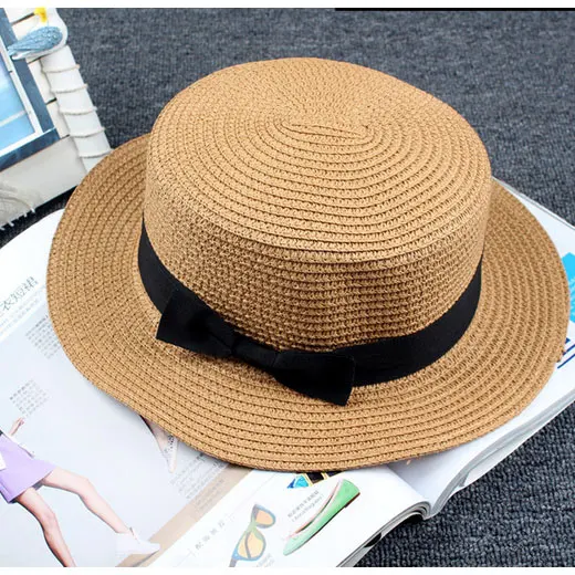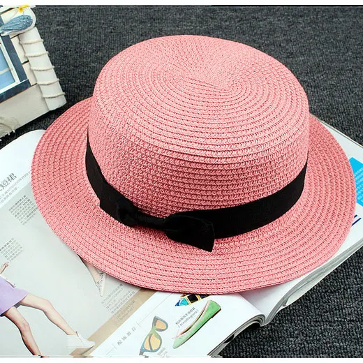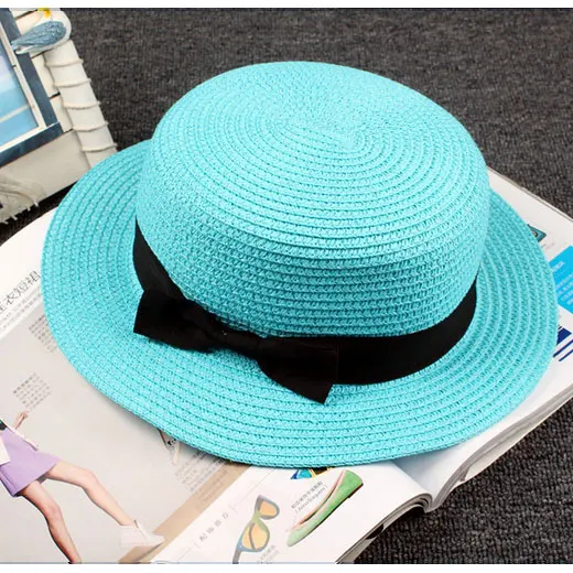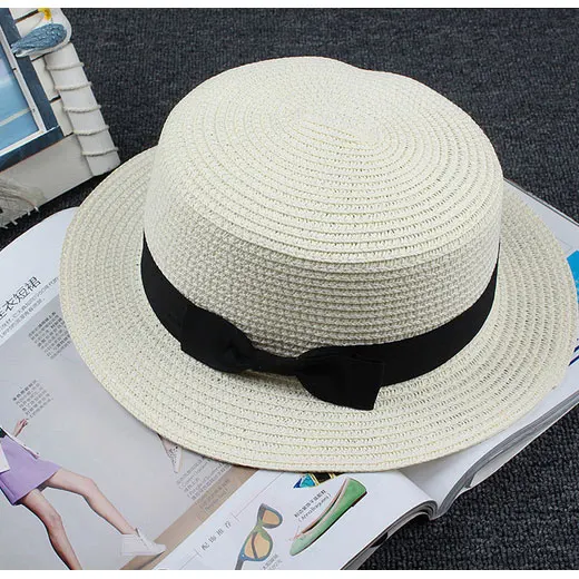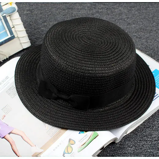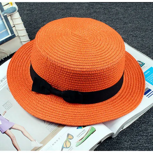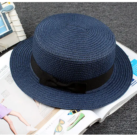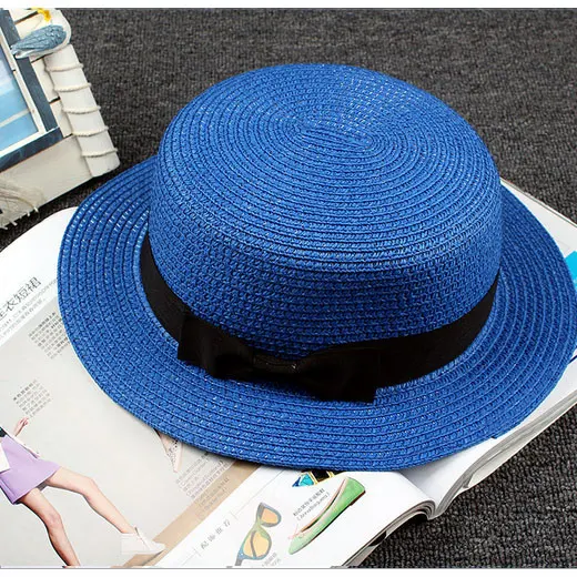 | [해외]Cllikko 레이디 배타 모자 리본 라운드 플랫 최고 밀짚 페도라 모자 파나마 모자 여름 모자 밀짚 모자 11 색 |