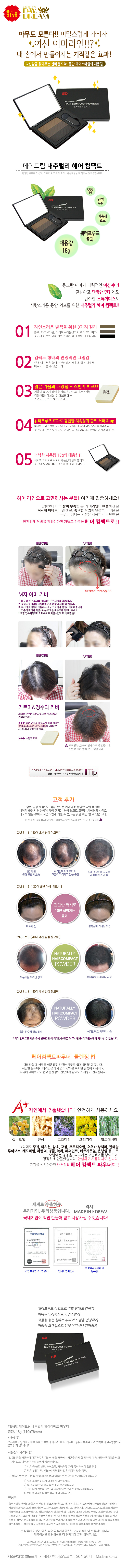 - 사용방법브러쉬를 이용하여 커버를 원하는 부분의 머리 이마 라인이나 가르마, 정수리 부분을 머리 안쪽부터 얼굴 방향으로 고루 펴 발라줍니다.