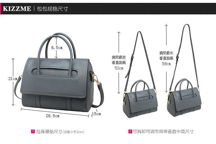 可拆卸肩带最短垂直中高为52cm,最长垂直中高为58cm。