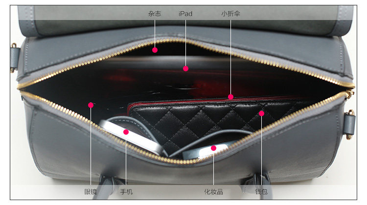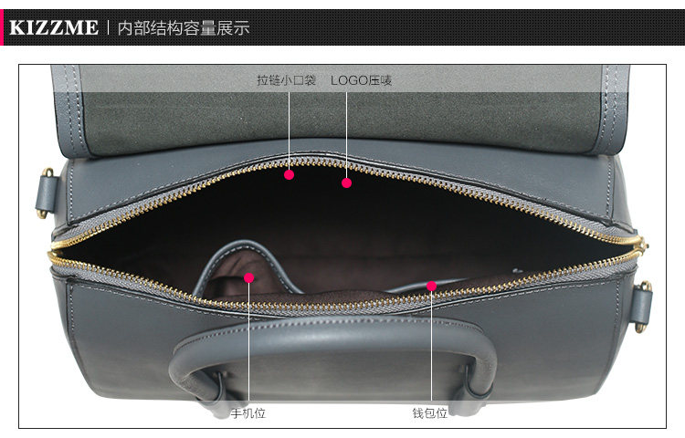 翻盖为包包主封口,内有拉链封口,内有1个手机位,1个钱包位,1个拉链小口袋。