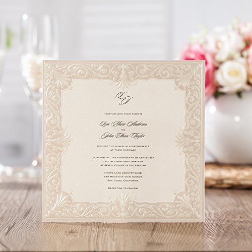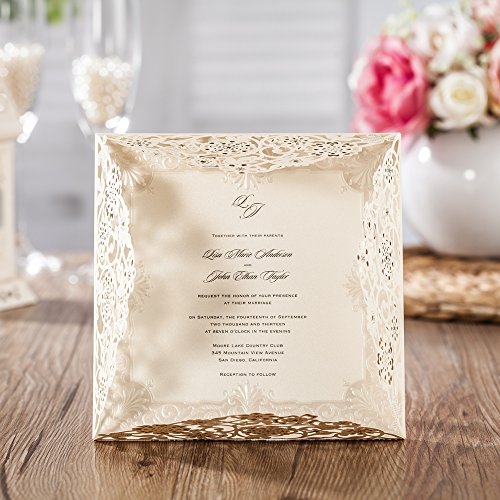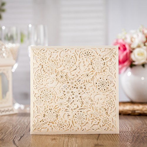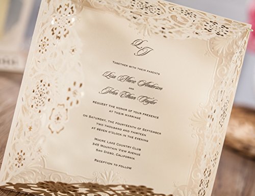 Wishmade 50x Laser Cut Invitations Cards Kit With Matched Thank You Card and RSVP Card For Wedding Party Birthday Occasion CW6110