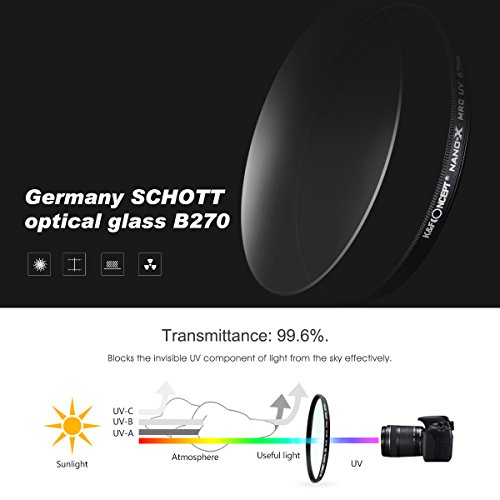 Protects your lens from dirt, scratches, fingerprints, and accidental damage.Reduce haze and improve contrast to your video and digital images by minimizing the amount of ultraviolet (UV) light.