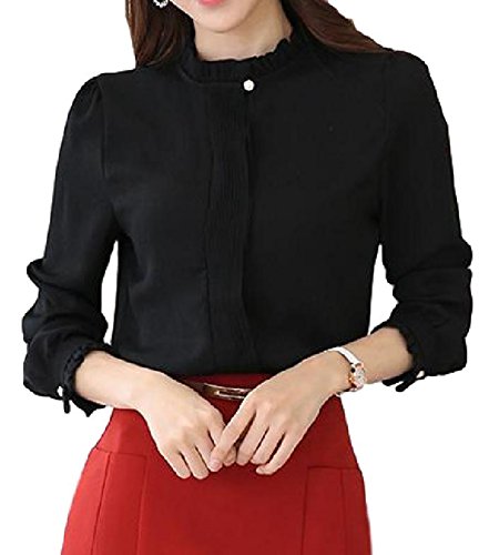 -. Feature : きれいめスタイルの定番のフリルブラウス。清楚なイメージのホワイト&ブラックカラーで大人の女性の優雅なイメージに。 シンプルなデザインで、20代、30代、40代、50代、年齢を問わずお洒落に決まります。1枚でもさらりと着こなして頂けます。 / エレガントできちんと感も出るシャツ ブラウスは普段着使いから通勤、オフィス、ビジネスシーンやパーティー、イベント、デートやお出かけにも着て頂けます。ジャケットやカーディガンを羽織ってフォーマルな場面にもどうぞ。合わせ方次第で 春 夏 秋 冬 季節を問わずオールシーズンご利用頂けます。 / パンツ スタイルもスカート スタイルも合わせられます。スキニーパンツやデニムとパンプスでシンプルに纏めてもよし。膝丈やミモレ丈のタイトスカート、フレアスカートでモテ系スタイルもいいですね。ガウチョパンツと合わせたり、サロペットのインナーとしても使えます。アマゾンランキングでも人気のアイテムです。 / 入学式・入園式、卒業式・卒園式、七五三・お宮参り・参観日などのママ コーデ、セレモニー スーツ、フォーマルスーツのインナーとしてもお使い頂けます。様々なシーンに大活躍の愛されアイテムです。 柔らかい しわになりにくい 素材で着心地よく毎日の装いにピッタリです。