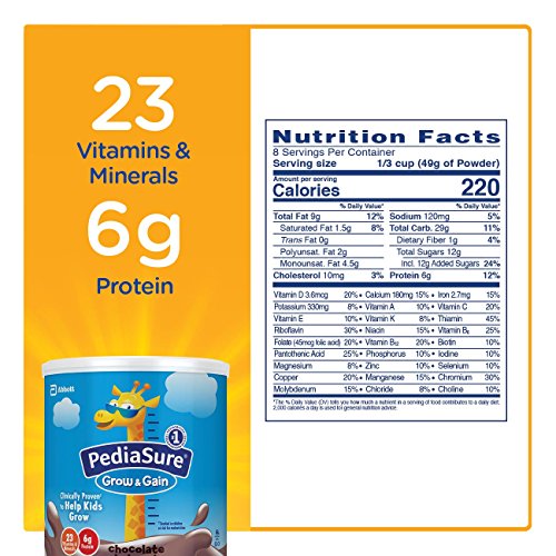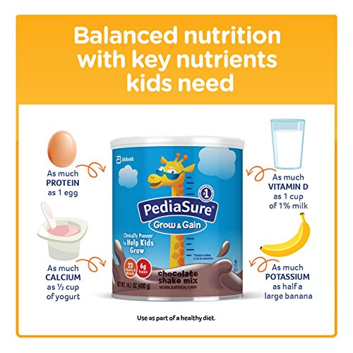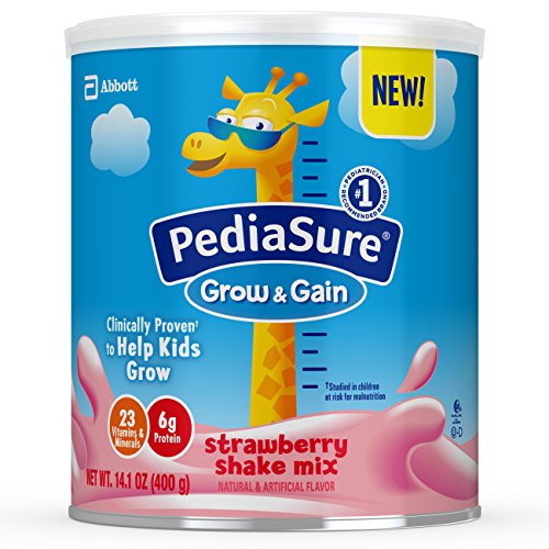 PediaSure Grow & Gain Shake Mix is nutrition to help kids catch up on growth from the #1 pediatrician recommended brand. When mixed with water, each glass of PediaSure Shake Mix is a source of 6g of protein and 23 vitamins and minerals. PediaSure Grow & Gain Shake Mix is also gluten-free, kosher, halal, and suitable for lactose intolerance but is not for children with galactosemia. Use as a snack or part of a healthy meal for your kids.