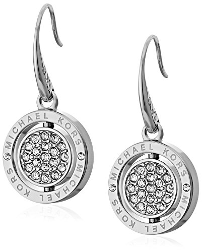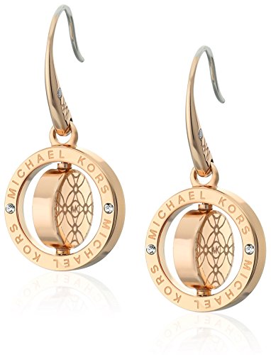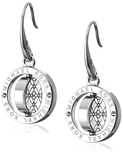 -. Feature : Metallic-tone earrings featuring round drops with center two-sided charm featuring logoing on one side and engraving on another / Fishhook finding / Imported