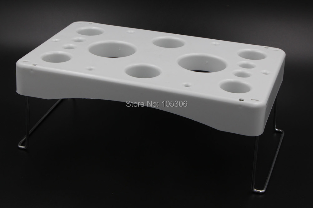 Keep your icing bags close at hand and organize your decorating space with this convenient stand.The 2 large and 6 small spaces hold featherweight and disposable bag upright and easy to grab.Use the smallest openings to hold flower nails.