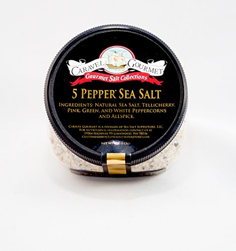 Caravel Gourmet 5 Pepper Fine Sea Salt, 4 Ounce Stackable Jar