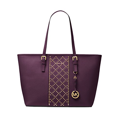 Studio : Michael Kors Publisher : Michael Kors Product Description A stylish essential, our Jet Set tote is crafted from Saffiano leather and embellished with mini grommets in a quilted motif for a luxe attitude. The roomy interior boasts a plethora of pockets to organize everyday items. 0