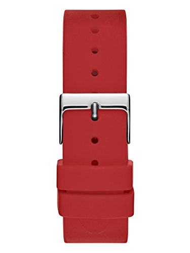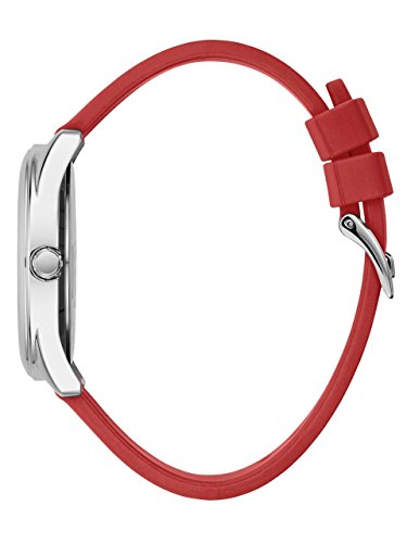 Analog timepiece combines sporty and sleek style with a red silicone strap and a polished silver-tone case. Quattro G logo dial.