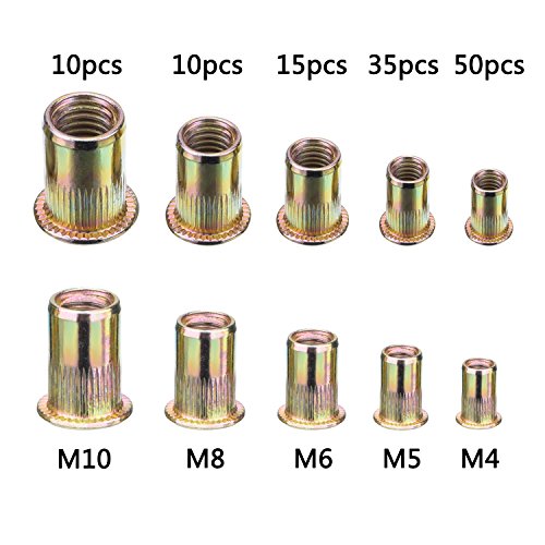 eBoot Zinc Plated Carbon Steel Rivet Nut Insert Nutsert M4 M5 M6 M8 M10, 120 Pieces