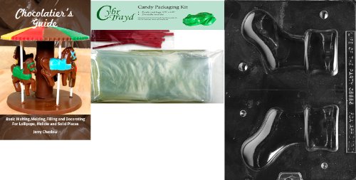 Cybrtrayd 3D Boot Chocolate Mold with Chocolatier's Bundle of 25 Cello Bags, 25 Red Twist Ties and Chocolatier's Guide