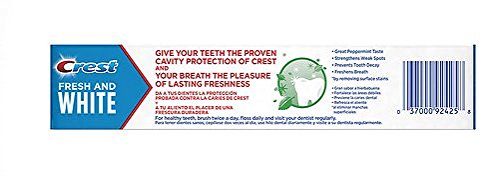 -. Binding : Health and Beauty -. ProductGroup : Health and Beauty -. ProductTypeName : HEALTH_PERSONAL_CARE -. Title : Crest Fresh and White Toothpaste