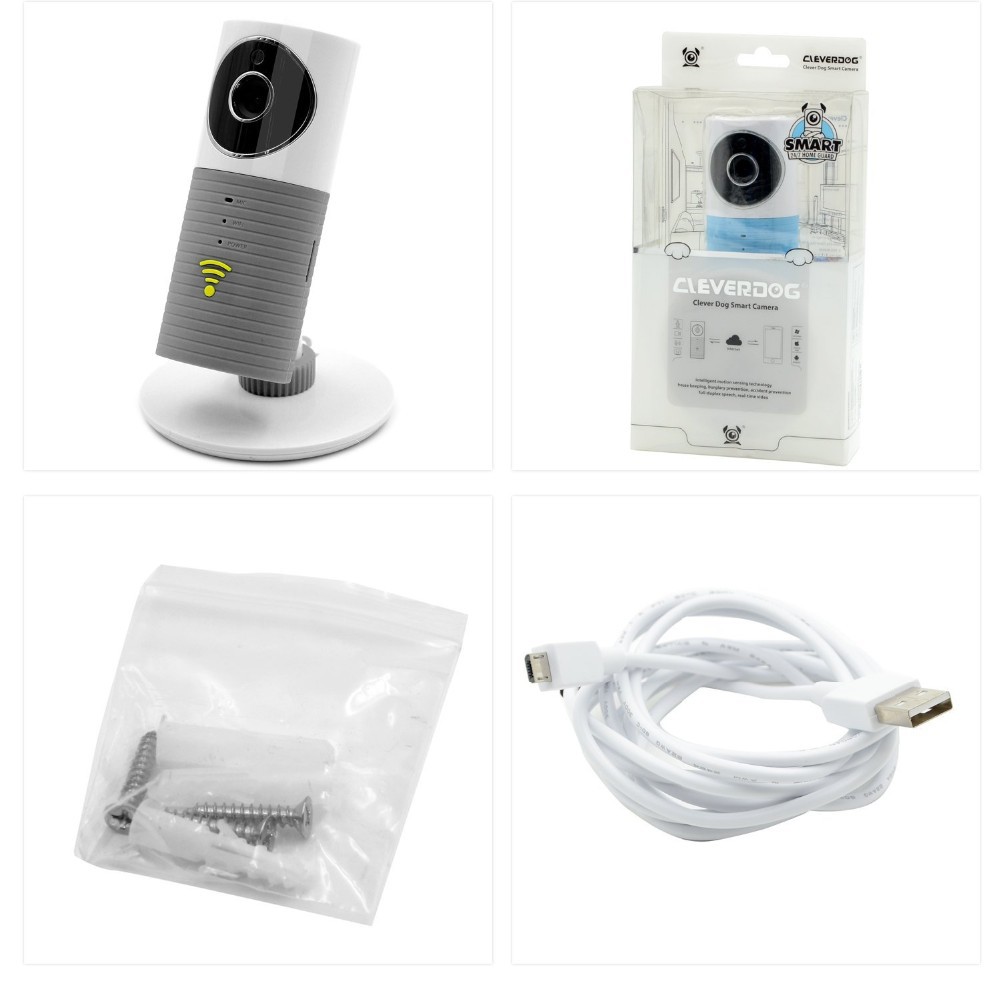 Package Contents: 1 x Wifi Camera, 1 x Bracket, 1 x USB Cable,1 x User Manual, 3 x Screws