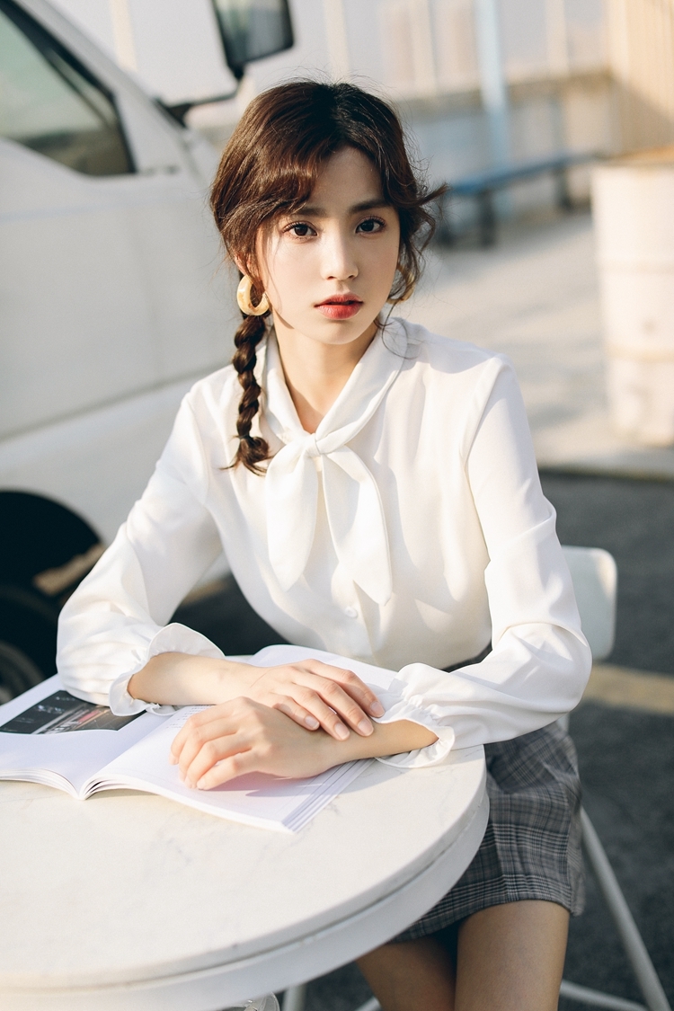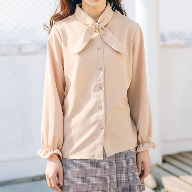 襟元のボウタイや袖元のフリルがゴージャスで、アクセサリーがなくても華やかさを演出してくれます。