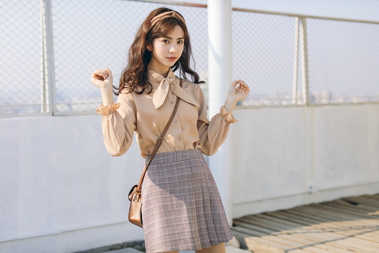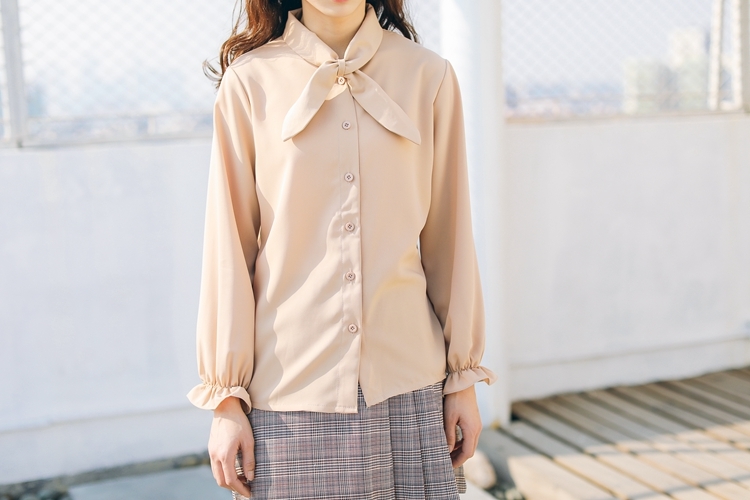 ふんわりとした素材が女性らしく、落ち着いたカラーが大人っぽい雰囲気の長袖シフォンシャツです。