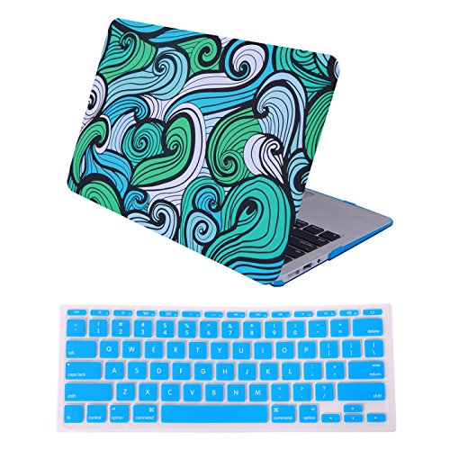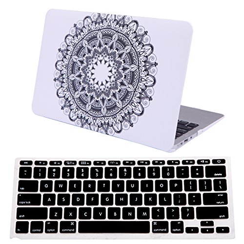 HDE Designer Art Pattern Hard Shell Case Snap Protective Cover + Keyboard Skin for Macbook Air 11.6" - Fits Model A1370 / A1465 (Teal Coral Mandala)