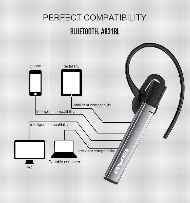- Fone De Ouvido Bluetooth:Auriculares Bluetooth Awei A831BL