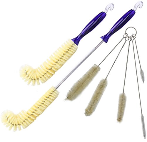 - EASY CLEANUP: Varying sizes including two right-angled bottle brushes with medium-stiff bristles and 5 small brushes. This set will scrub the gunk from those inside corners, tubes and straws with little time and effort.