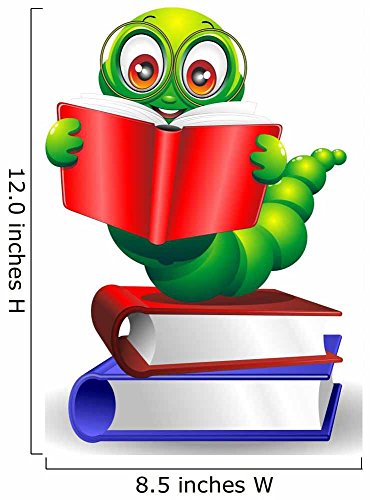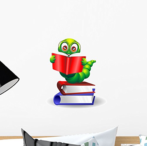 Wallmonkeys WM3809 With Book-worm Worm Cartoon Cartoon with Books-vector Peel and Stick Wall Decals (12 in H x 12 in W)