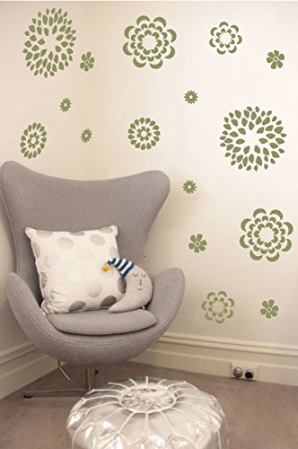 Flower Pattern Wall Decal - Removable DIY Vinyl Sticker Girls Room Art Home Decor Graphic Transfer (Olive, 19x24 inches)