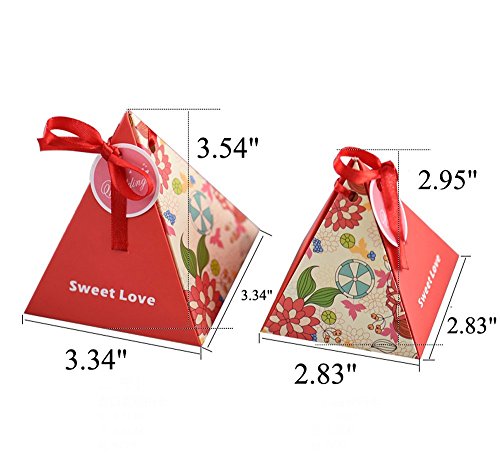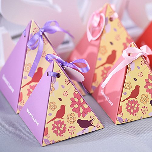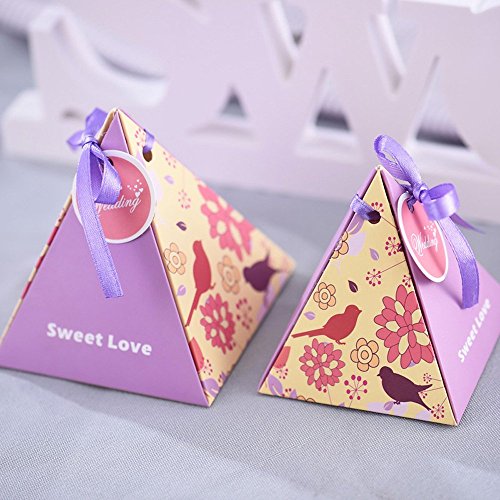 Moleya 50pcs Rustic Wedding DIY Party Favor Candy Boxes with Ribbon and a Small Card(Purple, 3.343.343.54 inch)
