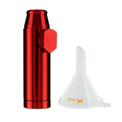 Premium Red Metal Snuff Bullet Twist Nasal Sniffer (Anodized Aluminum) Holds 3g w HumanFriendly Micro Funnel - Heavy Duty