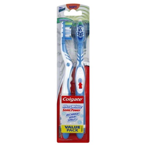 Colgate Max White Sonic Power Toothbrush, Soft, 2 Count (Colors May Vary)