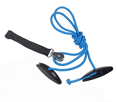 - Roller pulley system with bright blue nylon rope Easy to assemble and store when not in use