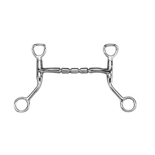 ReleaseDate : 2011-10-17 Studio : Myler Publisher : Myler Binding : Sports Product Description Stainless Steel 5" HBT Shank with Sweet Iron Mullen Triple Barrel (MB 32-3) Copper Inlay Mouth. This mouthpiece is made of polished Sweet Iron which naturally oxidizes. About the mouthpiece: the 32-3 is the Myler alternative to a traditional mullen. It has three barrels which turn the mouthpiece from the typical solid bar of a mullen into a ?exible bar which allows the horse to elevate his tongue and swallow more easily under the bit. When the reins are engaged, the 32-3 becomes a solid bar like a traditional mullen, but with an exaggerated curve. This curved bar rotates across the bars and lips down on to the tongue, applying pressure across the entire surface of the tongue. The ?exibility of the 32-3 makes it very forgiving and comforting when relaxed, but o?ers the rider control when engaged. The pressure on the tongue is distributed across all three barrels, which also create the Independent Side Movement . Because the tongue pressure applied by the 32-3 is evenly distributed across the entire tongue, this mouthpiece is considered "stronger" than the 04. However, its ?exibility makes it a forgiving mouthpiece that works well for horses who have su?ered mouth trauma or damage, or horses that tend to go behind the bit. For a ported mullen style o?ering more tongue relief, see the 06 or 36. From The Level Best for Your Horse by Dale, Ron and Bob Myler. ⓒToklat Originals, Inc. 0