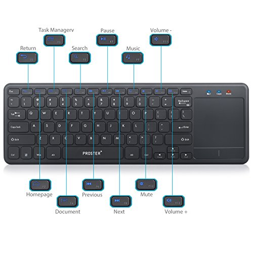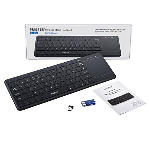 Proster Wireless Touchpad Keyboard Ultra-slim Wireless 2.4Ghz Keyboards with Multi-touch Touchpad for Google Smart TV HTPC IPTV Raspberry Pi 2 3 PS3 Android Box XBMC Windows 2000 XP Vista 8 10