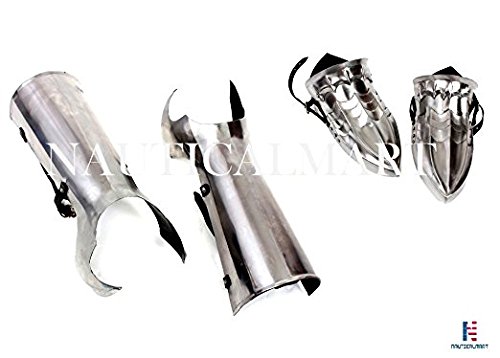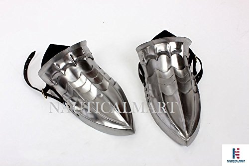 Product Description Fantasy Greaves and Sabatons are inspired by the medieval armor of the Nazgul in the Lord of the Rings Trilogy. Dark beings of terrible power, the Nazgul still require a steed to help them get around - whether the steed is a fine black horse or a giant flying lizard. When the Nazgul ride in the films their legs and feet are often visible, and show armor that is beautiful even though it appears twisted and evil. Made with 18 g. cold rolled steel, the Fantasy Greaves and Sabatons are able to be used in re-enactment or costume wear. Complete with all four shown armor parts, the Fantasy Greaves are made with two leather straps and buckles while the Sabatons have a fitted leather strap under it and an adjustable leather strap at the heel. The Sabatons are best worn with combat / construction boots and match our other pieces of Nazgul Fantasy armor. They will fit size 7 to 11 (men's). 0