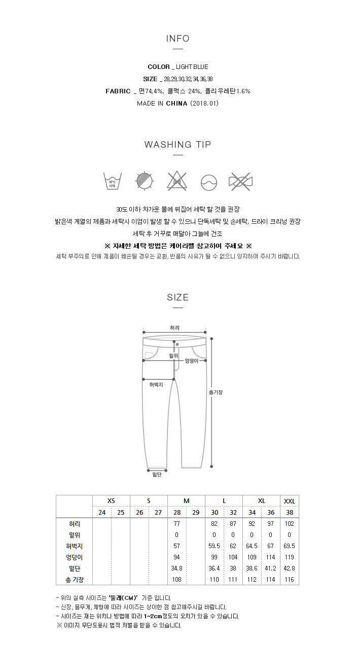 쿨맥스 바이오스톤 캣엠보 탈색 워싱 타이트IG-LB