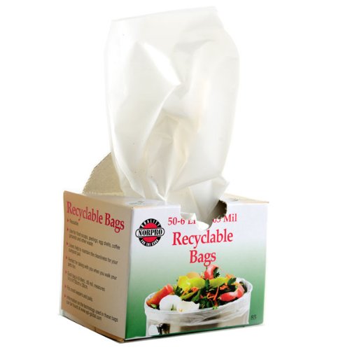 These bags are recyclable and reusable. Information on the technology used in these bags can be found at www.epi-global.com. Use for food scraps, peelings, egg shells, coffee grounds and other waste. Liners help to maintain the cleanliness for your compost pail. Perfect for taking with you when you walk your pets too. Each bag is 6 liters, .65 mil, measures 14""/35cm X 14""/35 cm. Fits most keepers and pails.