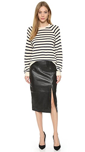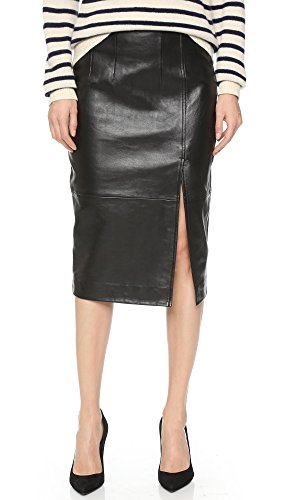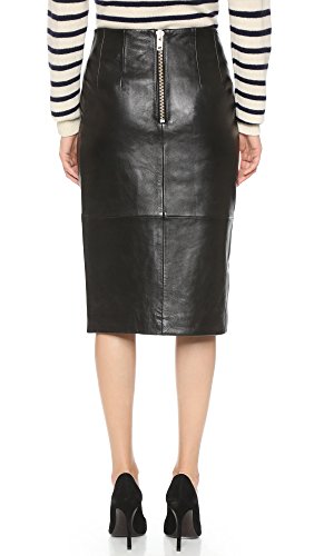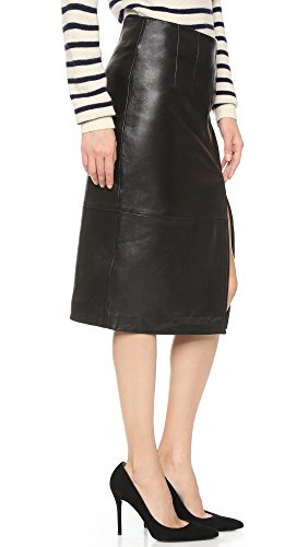 This Ganni pencil skirt is updated in soft leather and finished with an off-center slit. Darts at waist. Exposed back zip. Lined.
