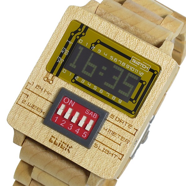 パソコンやゲーム機に内蔵され、設定を操作する「ディップスイッチ」これを腕時計に搭載したのは世界初! 見た目にも新しいユニークなデザイン。スイッチを回すことで様々な表示に切り替わります。スイッチの種類は1~5まで。スタジオやライブハウスにあるミキサーのようなスイッチをパチパチ、スライドさせて楽しもう!