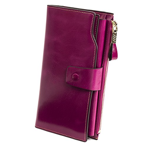 -. Title : Women's Large Leather RFID Wallets Purse Card Holder with Zipper
