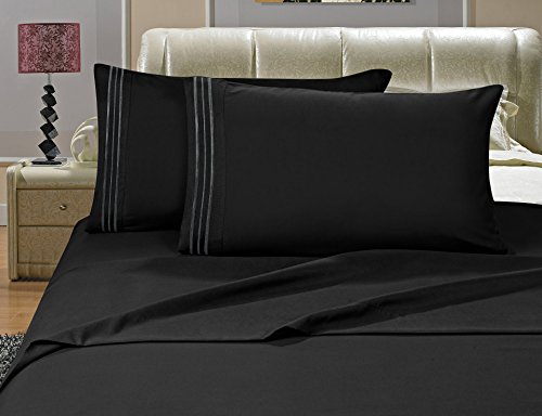 Elegance Linen ® 1500 Thread Count QUEEN Size Silky Soft Luxurious 4pcs SHEET SET Deep Pocket Up to 16" - Black