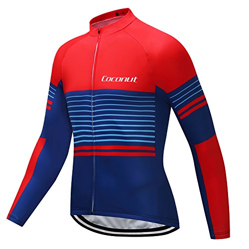Men's Long Sleeve Cycling Jersey Bike Shirt Bicycle Clothing Breathable (Chest 40-42" - Large, Red&Blue)