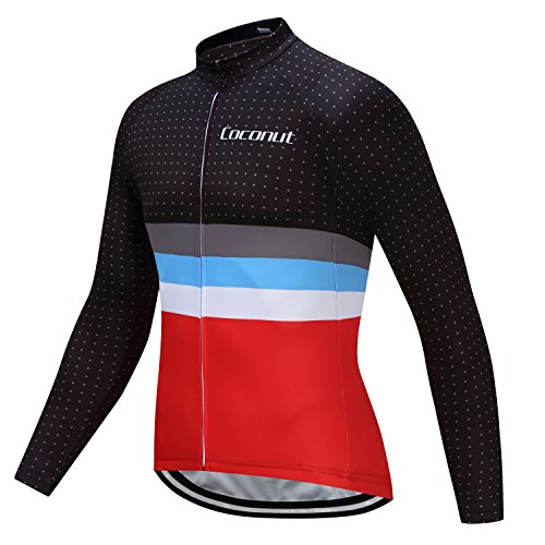 Men's Long Sleeve Cycling Jersey Bike Shirt Bicycle Clothing Breathable (Chest 40-42" - Large, Black&Red)